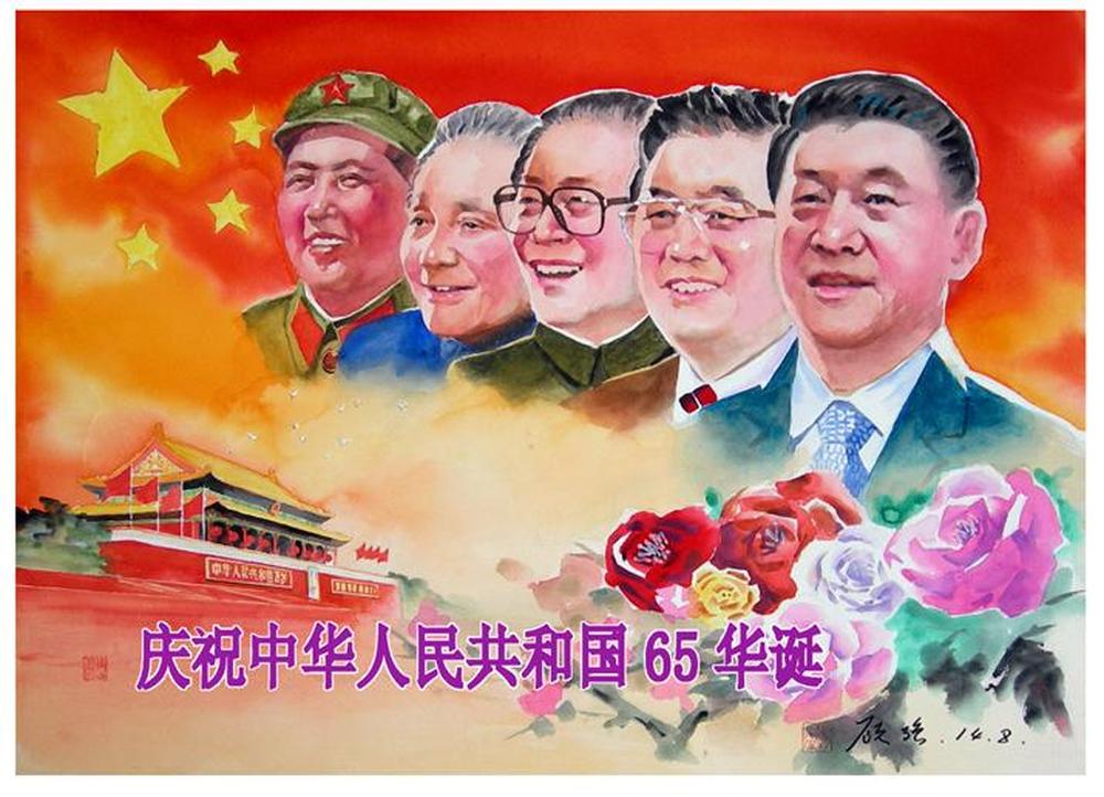 水彩人物;此话是在以前画的四个为人的基础上改动的,加上了刚当选的习近平主席,正好今年是65年大庆,故起名于此;